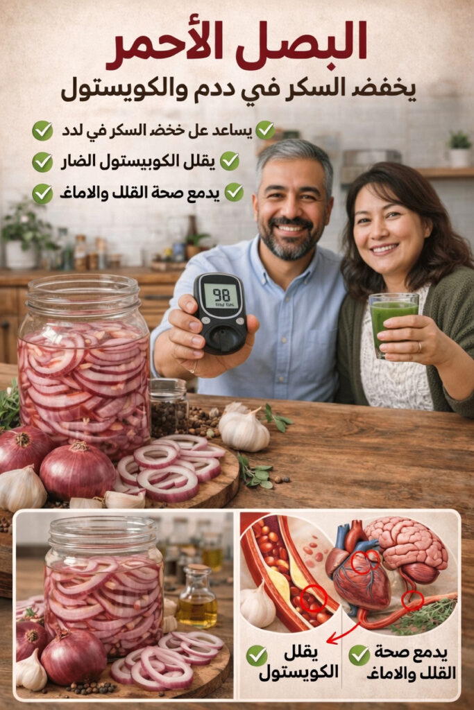 إذا كنت تبحث عن طريقة بسيطة وطبيعية لدعم صحتك اليومية، فقد يكون البصل الأحمر من أسهل الخيارات التي يمكنك البدء بها. فهو غني بمركبات نباتية مفيدة، وقد يساهم ضمن نظام غذائي متوازن في دعم سكر الدم والكوليسترول وصحة القلب بشكل عام.