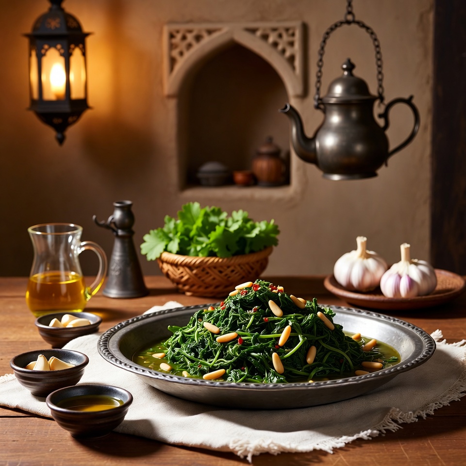 خبيزة برية مُشوَّحة بالثوم وزيت الزيتون
