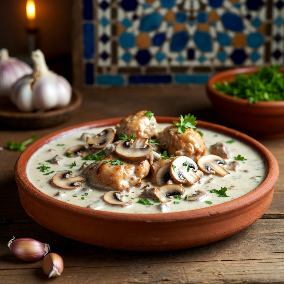 دجاج بالكريمة والثوم مع صلصة الفطر