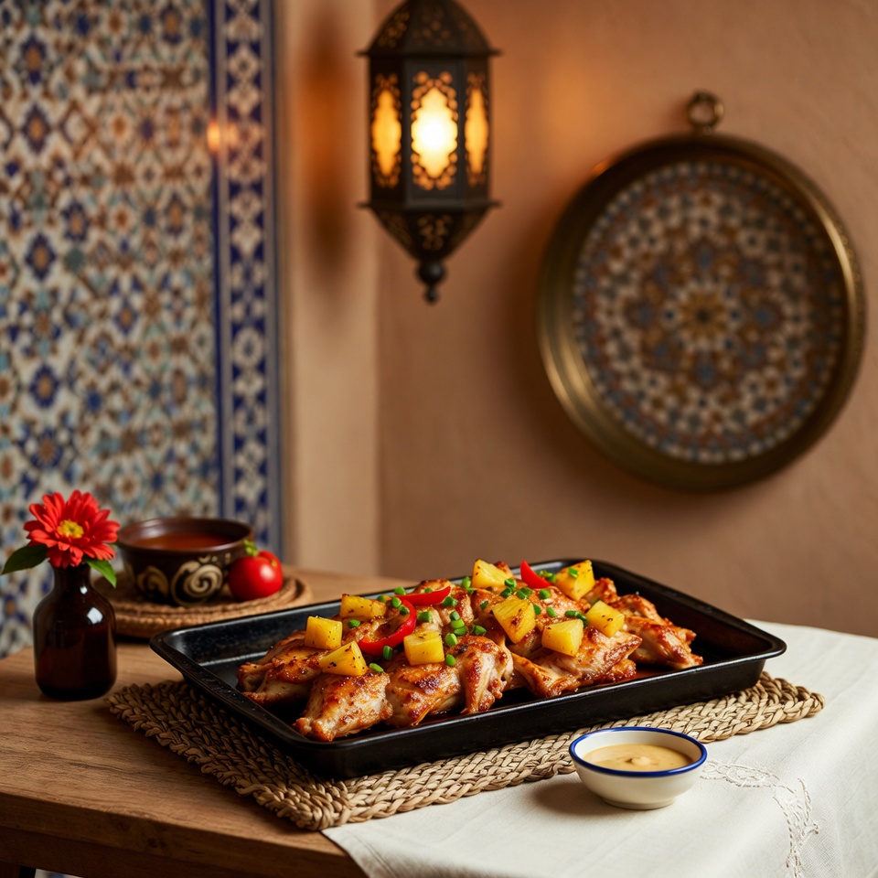 استمتع بنكهة استوائية مميزة على مائدتك مع وصفة دجاج هاواي في صينية واحدة. هذه الوجبة تجمع بين الحلاوة والملوحة والطعم اللاذع في طبق واحد يُطهى في الفرن، ما يجعلها مثالية لعشاء سريع وسهل التنظيف. قطع الدجاج الطرية، الخضار الملونة، وقطع الأناناس تضيف مزيجًا شهيًا ومظهرًا جذابًا.