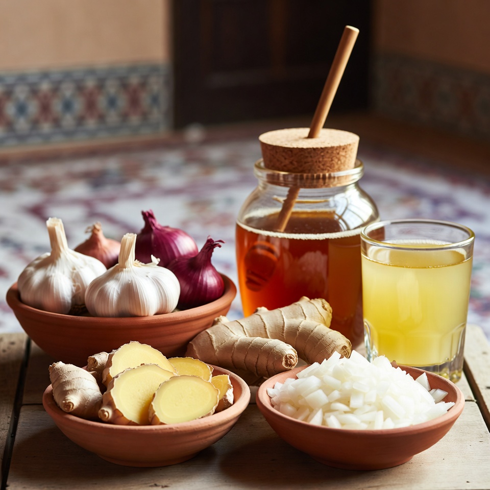 إضافة مكونات مثل الثوم والزنجبيل والبصل وعصير الليمون والعسل إلى نظامك اليومي قد تكون وسيلة سهلة وطبيعية لمساندة الجسم في مقاومة المرض. فهذه العناصر معروفة بدورها في دعم المناعة، والمساعدة في تهدئة الجهاز التنفسي، وتحسين الشعور العام أثناء فترة التعافي.