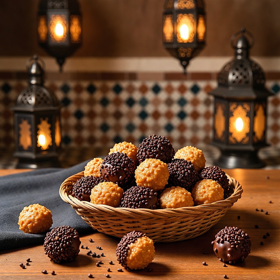 كرات زبدة الفول السوداني مع كريسبي الأرز بالشوكولاتة