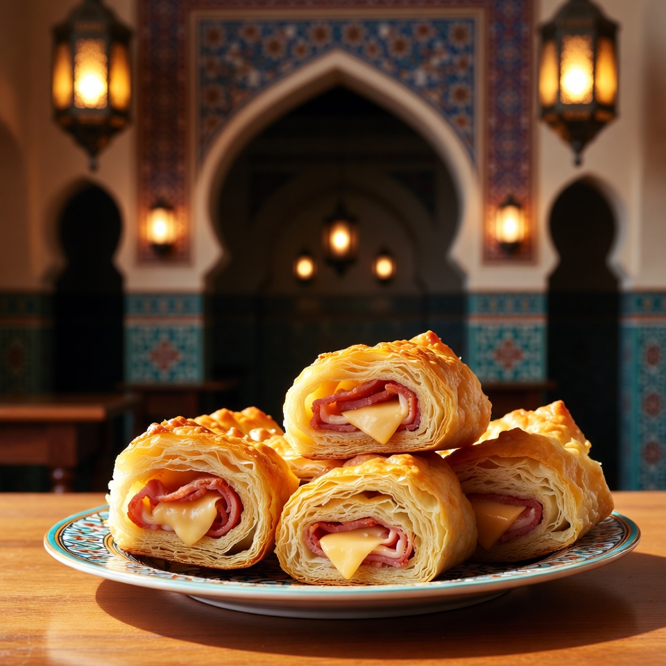 هذه لفائف البف باستري بالهام والجبن سهلة وسريعة التحضير، بطعم غني ومقرمش، وتناسب جميع المناسبات من الإفطار إلى العزائم والحفلات.