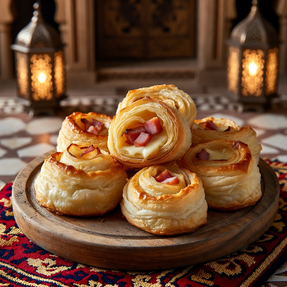 فطائر البف باستري المحشوة بالهام والجبن من أشهر المقبلات السهلة والسريعة التي ترضي جميع الأذواق. تتميز بعجينتها الهشة الذهبية وحشوتها الغنية بالهام المالح والجبن الذائب، ما يجعلها خيارًا مثاليًا للحفلات، والولائم، والرحلات، أو حتى كسناك خفيف مع الشاي أو القهوة.