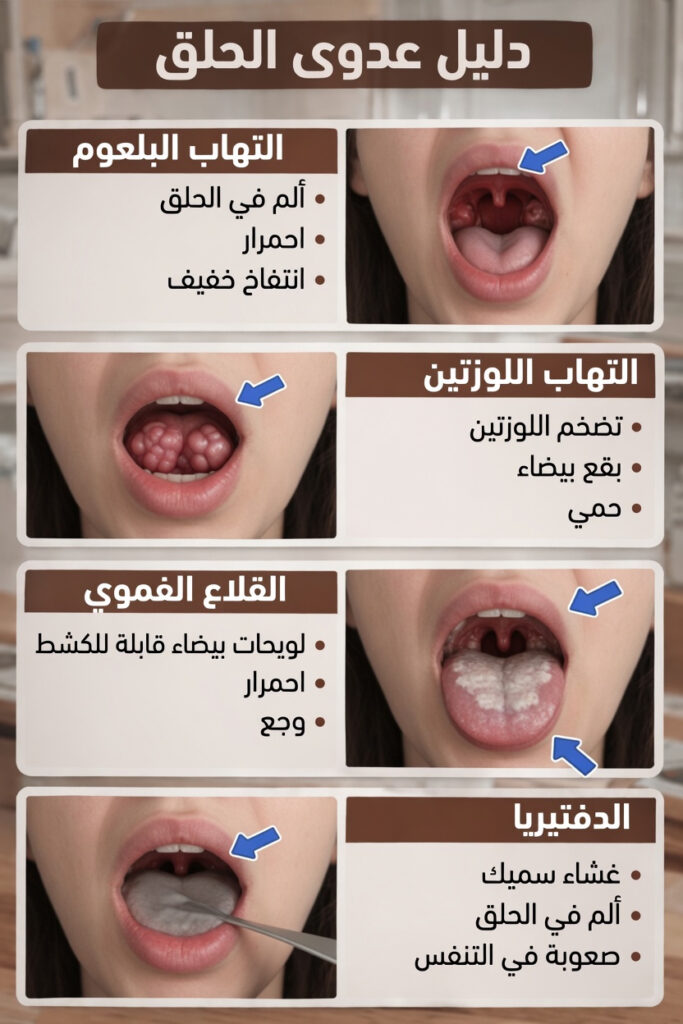 القدرة على التمييز بين التهاب البلعوم والتهاب اللوزتين والقلاع الفموي والدفتيريا تساعدك على فهم ما يحدث في حلقك بشكل أفضل. وعندما تنتبه إلى الأعراض وتعرف متى تطلب المساعدة، تصبح فرصتك أكبر في السيطرة على الانزعاج والتصرف بطريقة صحيحة.