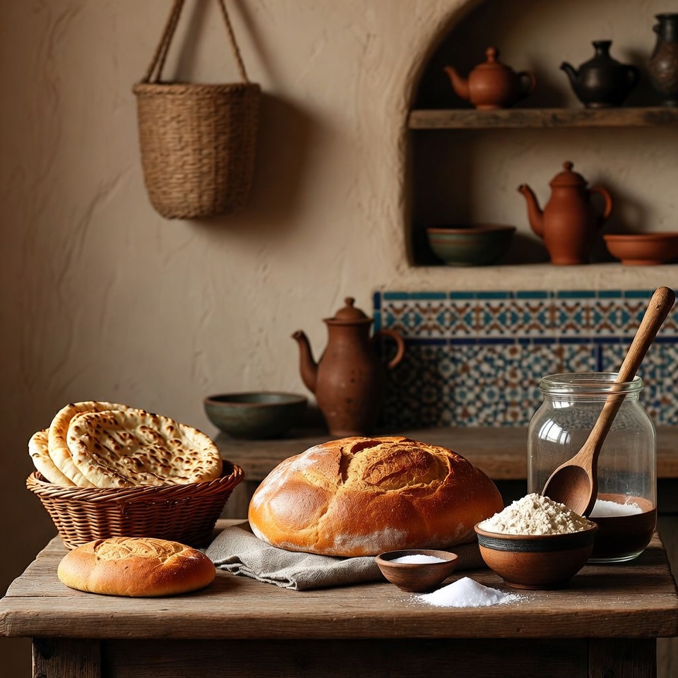المكونات (يكفي لعمل 6–8 أرغفة مسطحة)