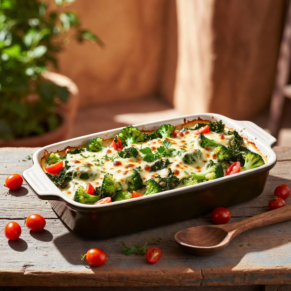 استمتع بطاجن البروكلي والكالي الكريمي بالطماطم كخيار مغذي وشهي لوجبة خفيفة أو عشاء عائلي مميز!