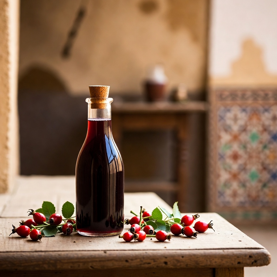 مشروب نبيذ منزلي لذيذ مصنوع من ثمر الورد، غني بفيتامين C وبنكهة فاكهية عميقة. مثالي لأمسيات دافئة أو للاحتفال بالمناسبات الخاصة مع لمسة طبيعية مميزة.